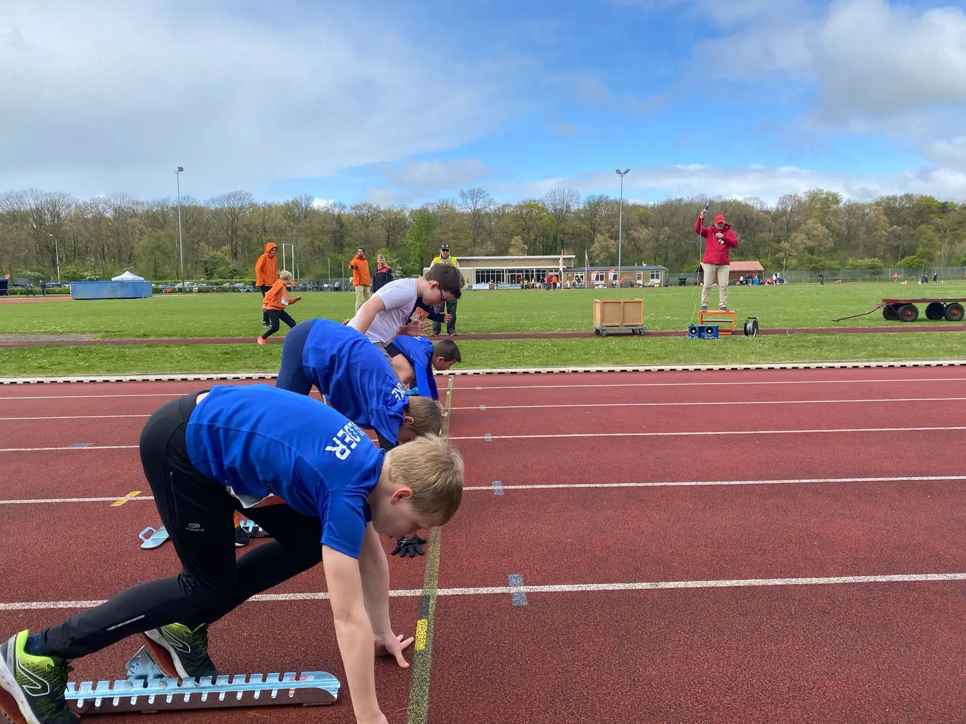 De jonge atleten stonden nerveus aan de start van hun eerste wedstrijd van het seizoen. De wind waaide hard en de regen kwam af en toe uit de lucht vallen. Maar ondanks het slechte weer waren de pupillen vastberaden om hun persoonlijke records te verbeteren.