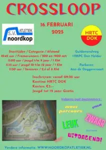![]() In samenwerking met HRTC DOK organiseert sv Noordkop atletiek op zondag 16 februari 2025 de 7e DOK-cross.Wie durft het aan om over een parcours met een lengte van +/- 2 km dat door ervaringsdeskundigen wordt omschreven als: “Uitdagend, zwaar (ik zou zeggen pittig) maar zeker mooi”, 1, 2 of 3 ronden te lopen. De jeugd, […] |