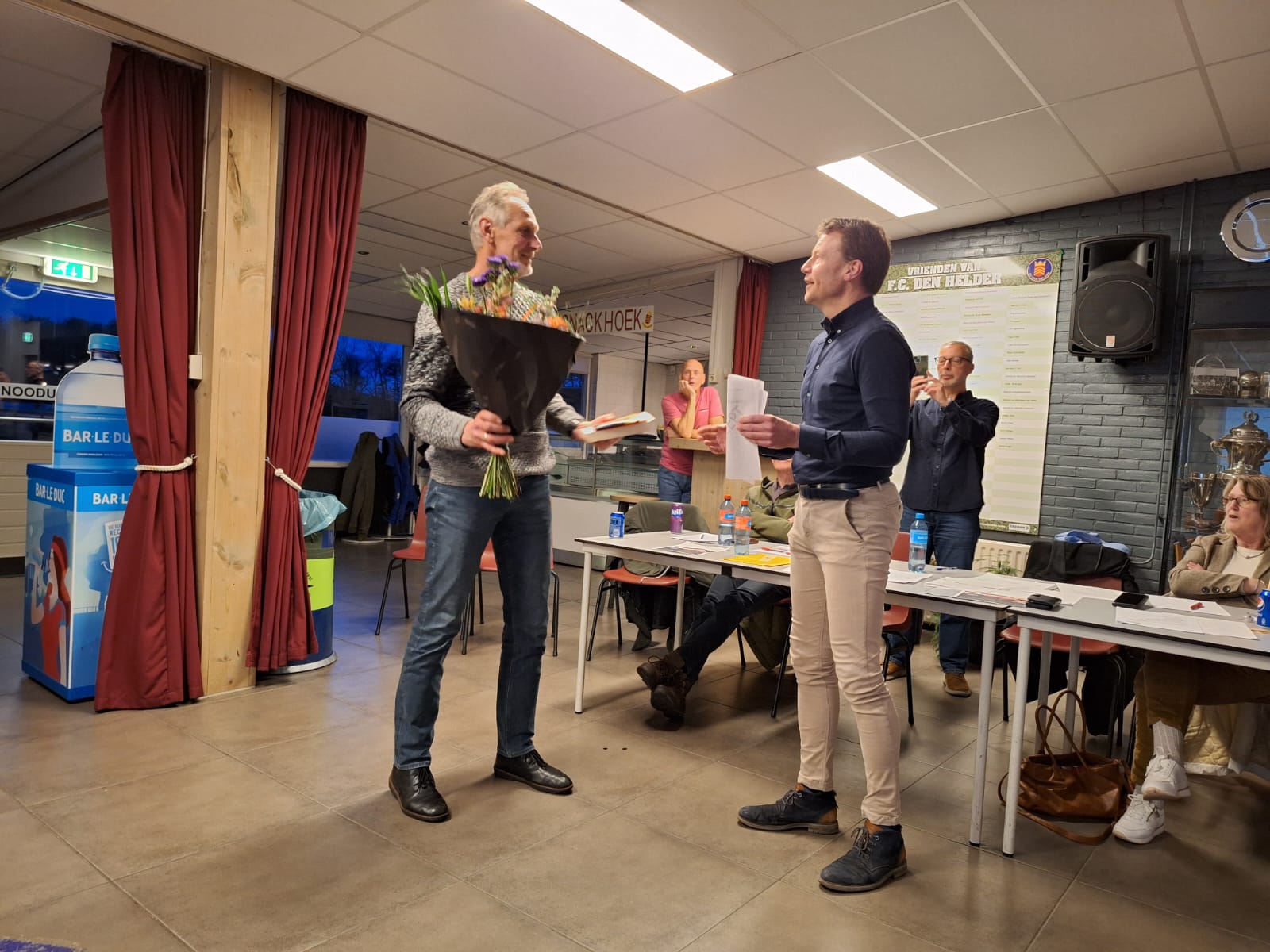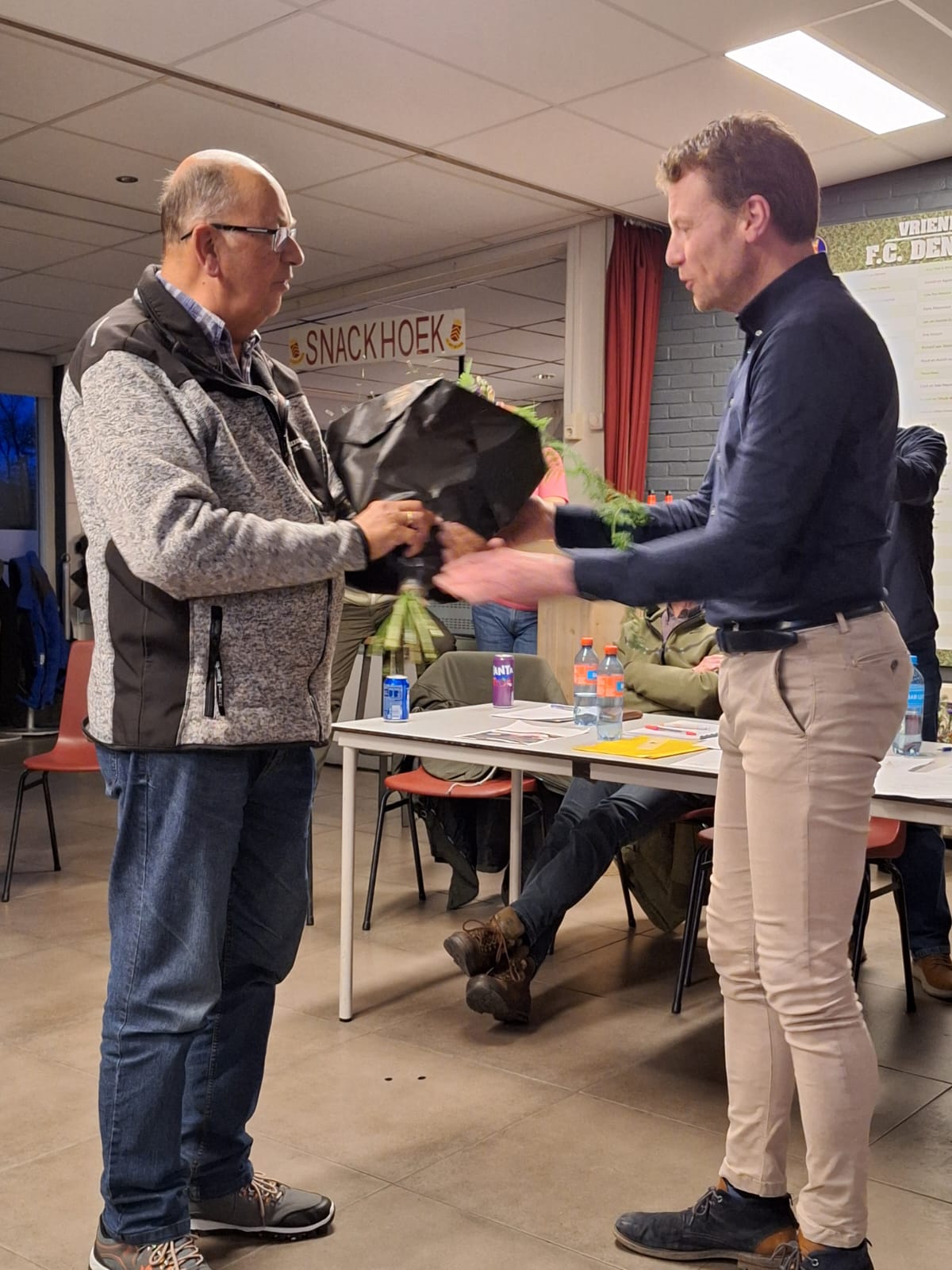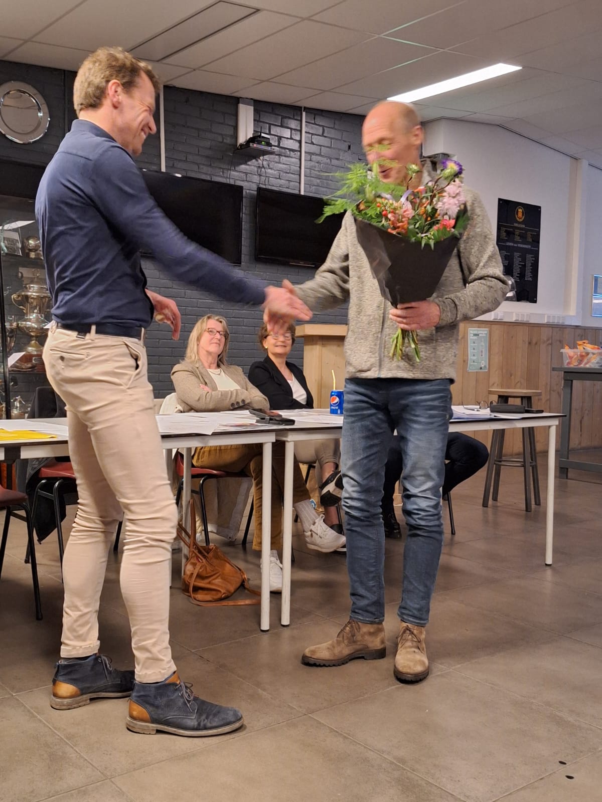 Na de presentatie van de website werden de jubilarissen benoemd en werd Kees Heemskerk bedankt voor zijn jarenlange rol als trainingscoördinator Er werden bloemen en cadeaus uitgereikt als blijk van waardering voor hun inzet voor de vereniging.